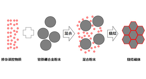 晶界摻雜調(diào)控技術(shù)是公司開發(fā)出超高磁性能系列、高熱穩(wěn)定性系列、低重稀土系列燒結(jié)釹鐵硼磁體的關(guān)鍵核心技術(shù),也是廢舊磁體回收再生過程的核心技術(shù)。