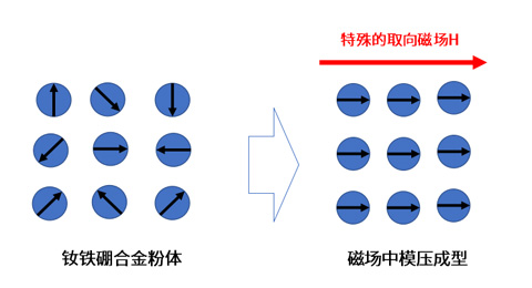 磁場取向成型是燒結(jié)釹鐵硼生產(chǎn)制造的關(guān)鍵工序,粉末取向一致度的高低和成型后壓坯密度的均勻性直接影響著磁體的主要磁性能和機械加工良品率。