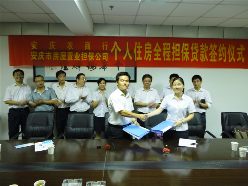 為促進(jìn)安慶房地產(chǎn)市場(chǎng)健康平穩(wěn)發(fā)展,滿足我市居民居住性和改善性購(gòu)房按揭貸款需求,安慶市房屋置業(yè)擔(dān)保公司不斷拓寬思路,創(chuàng)新業(yè)務(wù)品種,9月28日與安慶獨(dú)秀農(nóng)商行簽訂了《個(gè)人住房按揭全程擔(dān)保貸款合作協(xié)議》。安慶獨(dú)秀農(nóng)商行董事長(zhǎng)韋道德、行長(zhǎng)李春香,安慶市房屋置業(yè)擔(dān)保公司董事長(zhǎng)、總經(jīng)理沈軍、監(jiān)事長(zhǎng)、支部書(shū)記劉芳等合作雙方單位相關(guān)人員參加簽約儀式。