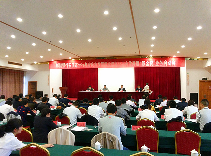 11月6日下午,安慶市房屋置業(yè)擔(dān)保公司與郵政儲(chǔ)蓄銀行安慶市分行聯(lián)合召開“置業(yè)消費(fèi)貸”業(yè)務(wù)啟動(dòng)會(huì)。安慶市房屋置業(yè)擔(dān)保公司董事長、總經(jīng)理沈軍、副總經(jīng)理鄧寅和郵政儲(chǔ)蓄銀行安慶市分行黨委書記、行長戴四清、副行長李金發(fā)等出席啟動(dòng)會(huì),擔(dān)保公司七縣一市分公司經(jīng)理及郵儲(chǔ)銀行各縣支行行長等60余人參加了會(huì)議。
