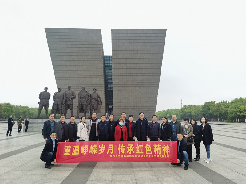 4月25日,安慶市房屋置業(yè)融資擔(dān)保公司黨支部組織全體黨員到渡江戰(zhàn)役紀(jì)念館,把黨史學(xué)習(xí)教育的課堂搬這里開展“重溫崢嶸歲月、傳承紅色精神”主題黨日活動。渡江戰(zhàn)役紀(jì)念館坐落在巢湖之濱,以基本展陳《百萬雄師過大江》為主線,共展出珍貴歷史照片、文物、油畫、雕塑2500余件,再現(xiàn)了革命艱難歷程、軍民團(tuán)結(jié)一心的恢宏篇章。通過一件件歷史文物、一幅幅革命影像,為我們再現(xiàn)了軍民奮勇渡江作戰(zhàn)的壯闊畫面。活動期間,再次重溫了入黨誓詞,部分黨員還分別進(jìn)行了戰(zhàn)役介紹、戰(zhàn)役中的小故事、觀后感活動。不忘歷史,開創(chuàng)未來,通過追尋渡江戰(zhàn)役英烈們的足跡,牢記革命先烈浴血奮戰(zhàn)、不怕犧牲的歷史,感悟初心使命,汲取奮斗力量,為推進(jìn)置業(yè)擔(dān)保國有企業(yè)改革發(fā)展開拓新局面。活動還邀請了局紀(jì)檢組、機(jī)關(guān)黨委、企指科和股權(quán)單位相關(guān)負(fù)責(zé)人參加。