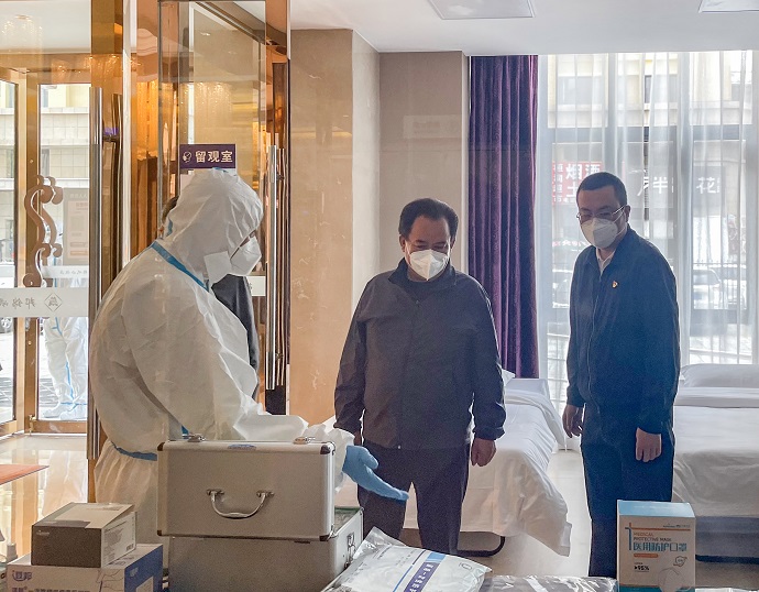 多吉次珠一行詳細(xì)察看了西藏開投邦錦花園酒店出入登記點(diǎn)、留觀室、疫情防控物資儲(chǔ)備室、全日制餐廳等區(qū)域,聽取了酒店疫情防控工作匯報(bào)。聽取匯報(bào)后,多吉次珠對(duì)酒店全力做好一線抗疫醫(yī)務(wù)工作者和公安民警后勤保障工作給予高度評(píng)價(jià)。他指出,西藏開投邦錦花園酒店站位高、有擔(dān)當(dāng),主動(dòng)承擔(dān)抗疫一線干部職工保障工作重要任務(wù),充分彰顯了國企擔(dān)當(dāng)、國企速度、國企精神,有力發(fā)揮了國資國企的“頂梁柱”作用。