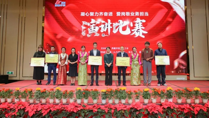 值此中國(guó)共產(chǎn)黨成立102周年和集團(tuán)公司成立十周年之際,為扎實(shí)推進(jìn)學(xué)習(xí)貫徹習(xí)近平新時(shí)代中國(guó)特色社會(huì)主義思想主題教育走深走實(shí),7月13日,由西藏開(kāi)發(fā)投資集團(tuán)有限公司工會(huì)主辦,黨建工作部(人力資源部)、機(jī)關(guān)黨委、團(tuán)委、婦委會(huì)聯(lián)合承辦的“凝心聚力齊奮進(jìn) 愛(ài)崗敬業(yè)勇?lián)?dāng)”主題演講比賽在拉薩邦錦花園酒店成功舉辦。區(qū)黨委宣傳部干部處處長(zhǎng)、一級(jí)調(diào)研員楊啟宏,區(qū)政府國(guó)資委機(jī)關(guān)黨委專(zhuān)職副書(shū)記卓瑪,區(qū)總工會(huì)宣教部四級(jí)調(diào)研員王政全等領(lǐng)導(dǎo),集團(tuán)公司黨委副書(shū)記、副董事長(zhǎng)、總經(jīng)理劉剛,集團(tuán)公司黨委委員、董事、總會(huì)計(jì)師陳焱罡,集團(tuán)公司黨委委員、區(qū)紀(jì)委監(jiān)委駐集團(tuán)公司紀(jì)檢監(jiān)察組組長(zhǎng)羅布次仁,集團(tuán)公司黨委委員、副總經(jīng)理、工會(huì)主席、機(jī)關(guān)黨委書(shū)記溫勇出席活動(dòng)并為獲獎(jiǎng)選手頒獎(jiǎng)。