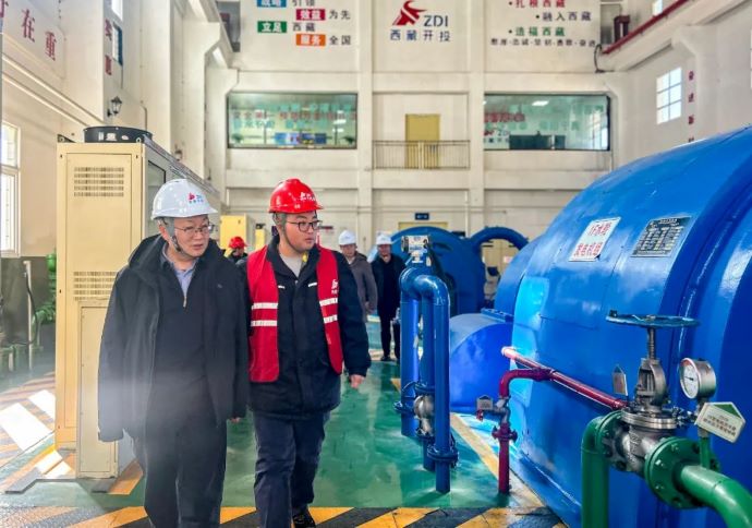 祁騰武(左一)調(diào)研嘎堆水電站安全生產(chǎn)工作。楊小梅 攝
