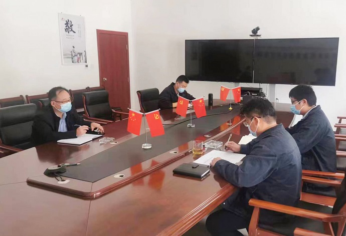 (公司領(lǐng)導給門衛(wèi)講解防疫要求 鄭永山攝)
