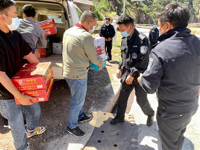 8月17日,西藏開投果多水電有限公司派員赴昌都市柴維鄉(xiāng)疫情防控點,看望慰問奮戰(zhàn)在防疫一線的工作人員,為他們送去方便面、礦泉水等物資。