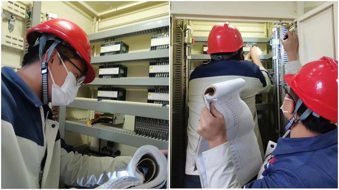 運(yùn)維主管帶領(lǐng)休息的運(yùn)維人員開展對水輪發(fā)電機(jī)一次調(diào)頻、PSS、繼電保護(hù)裝置、穩(wěn)控裝置、振蕩解列裝置、調(diào)度自動(dòng)化裝置、通訊裝置參數(shù)和定值核對,現(xiàn)場壓板投入及方式投退核對,確保藏中電網(wǎng)異步聯(lián)網(wǎng)期間嘎堆水電廠孤網(wǎng)安全穩(wěn)定運(yùn)行。
