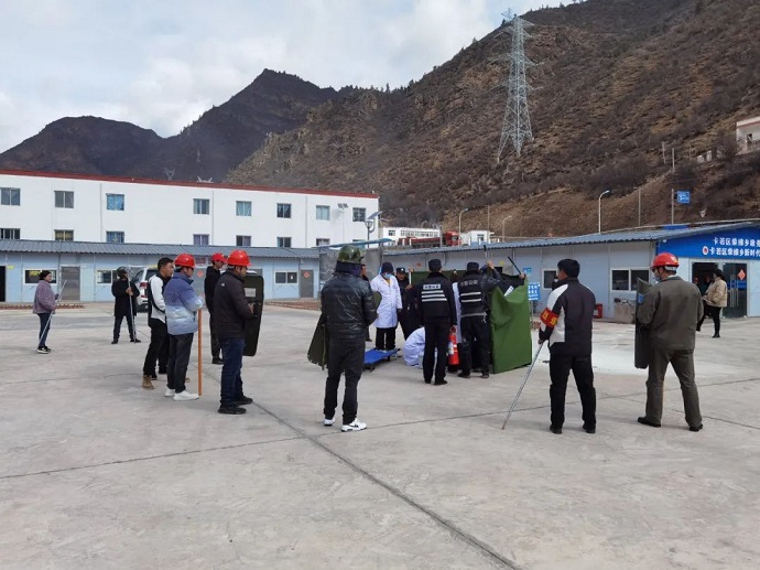 3月15日,果多水電公司與柴維鄉(xiāng)政府、柴維鄉(xiāng)派出所、柴維鄉(xiāng)衛(wèi)生院聯(lián)合開(kāi)展反自焚、反恐怖襲擊應(yīng)急演練。