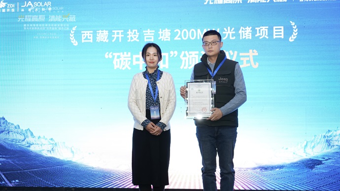 CTC國(guó)檢為吉塘200MW項(xiàng)目頒發(fā) “碳中和”證書(shū)