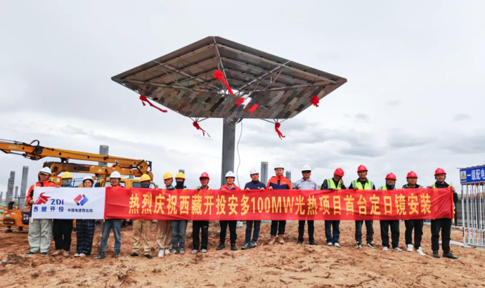 6月16日,西藏開投安多土碩100MW光熱+800MW光伏一體化項目光熱電站首臺定日鏡成功下線并順利完成安裝,這是項目推進的關(guān)鍵里程碑,標志著全球海拔最高、西藏首個塔式光熱電站工程邁出標志性一步。