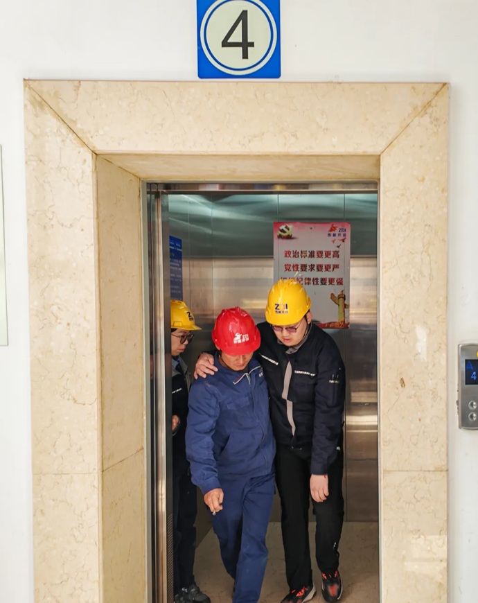 演練模擬廠房電梯因電氣故障導致人員被困場景,演練過程中公司應急指揮高效、分工明確、緊張有序,在電梯維保技術人員指導下,通過標準化救援操作成功將被困人員安全救出。