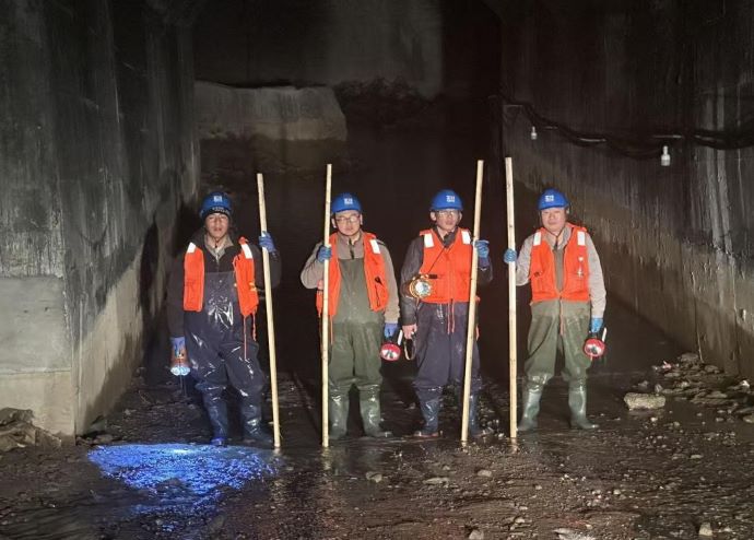 12月3日,公司組織對全長16.3公里的灌溉輸水洞開展全面檢查,重點排查長期運行中可能存在的凍融破壞、巖體應力變化等隱患。經(jīng)細致檢測,輸水洞整體運行狀態(tài)良好,完全滿足今冬明春供水需求,為后續(xù)灌溉工作奠定了堅實的安全基礎。