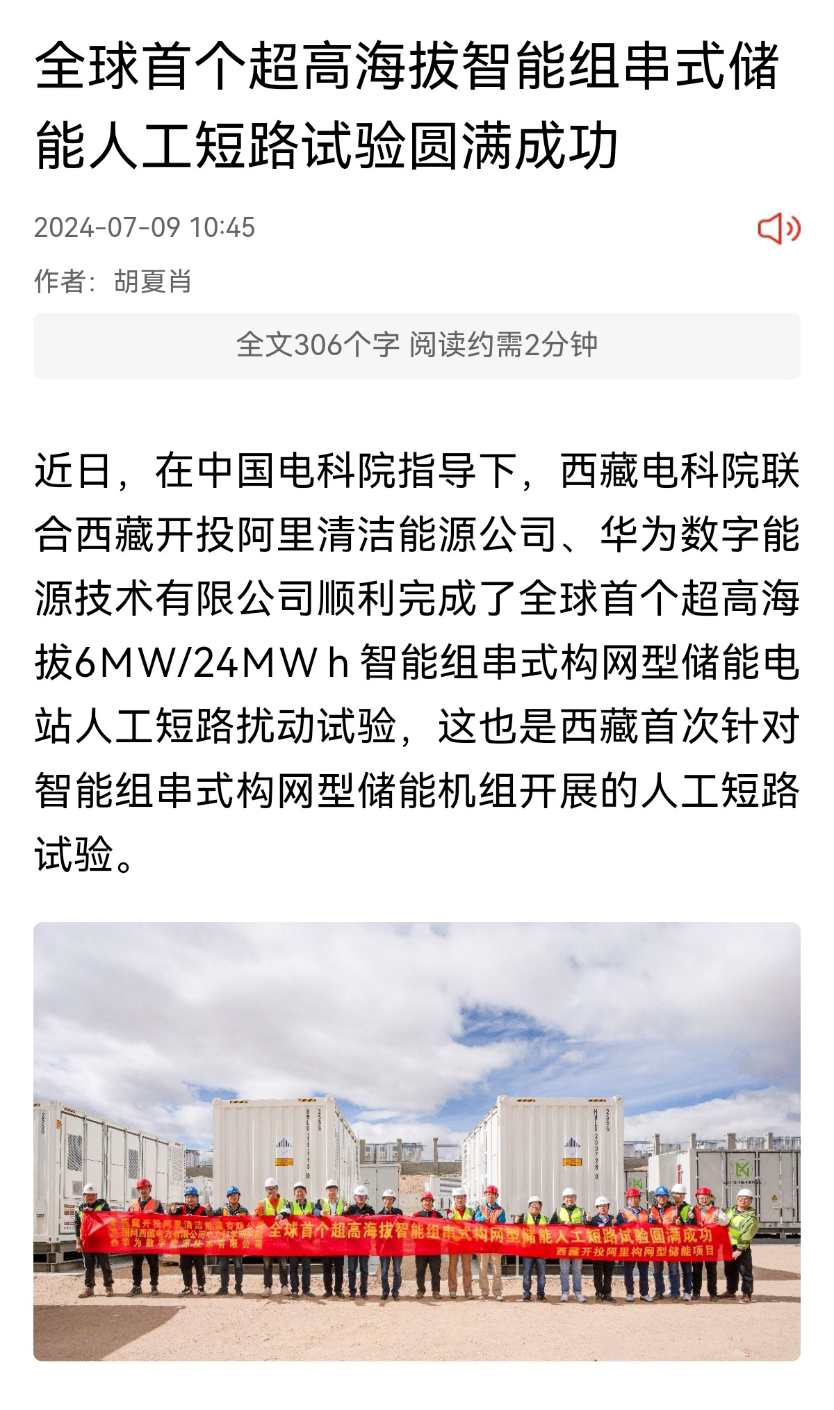 媒體報(bào)道丨全球首個超高海拔智能組串式儲能人工短路試驗(yàn)圓滿成功