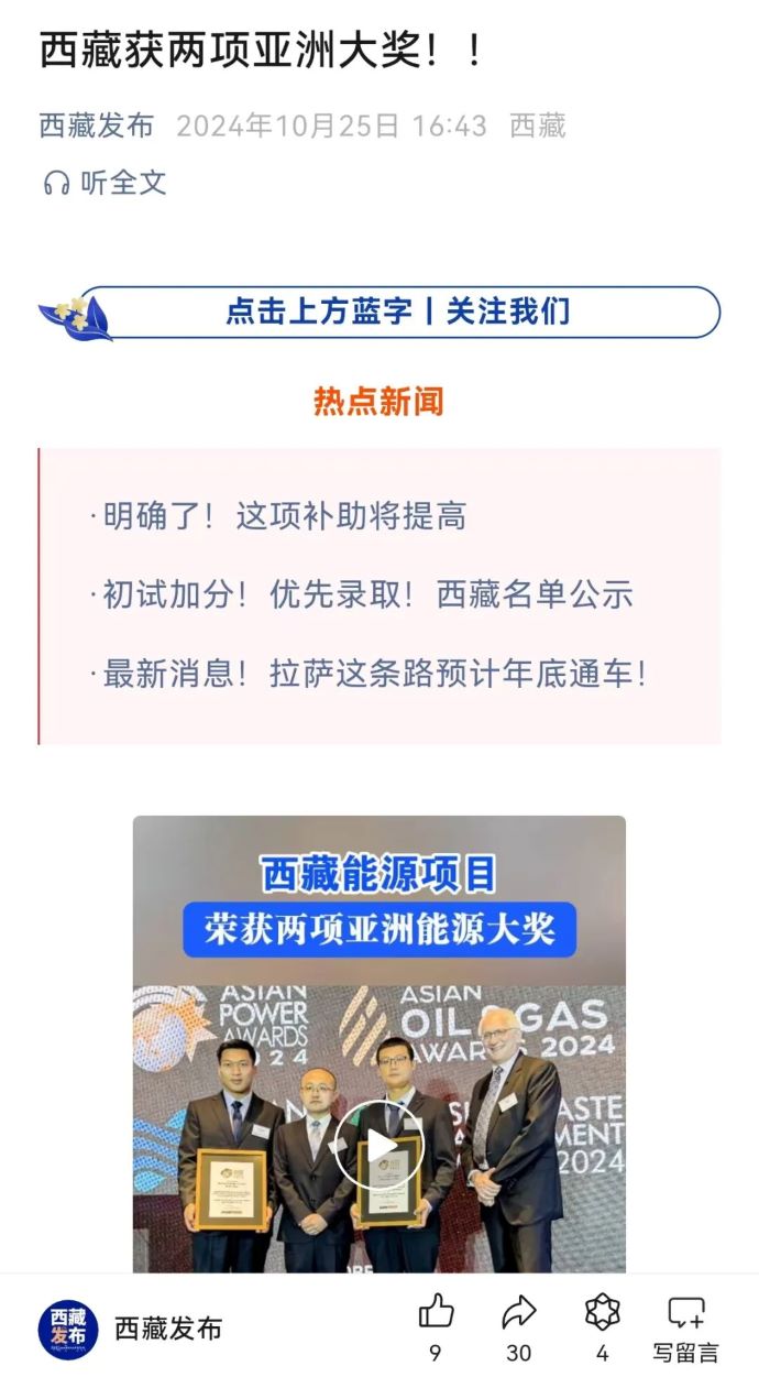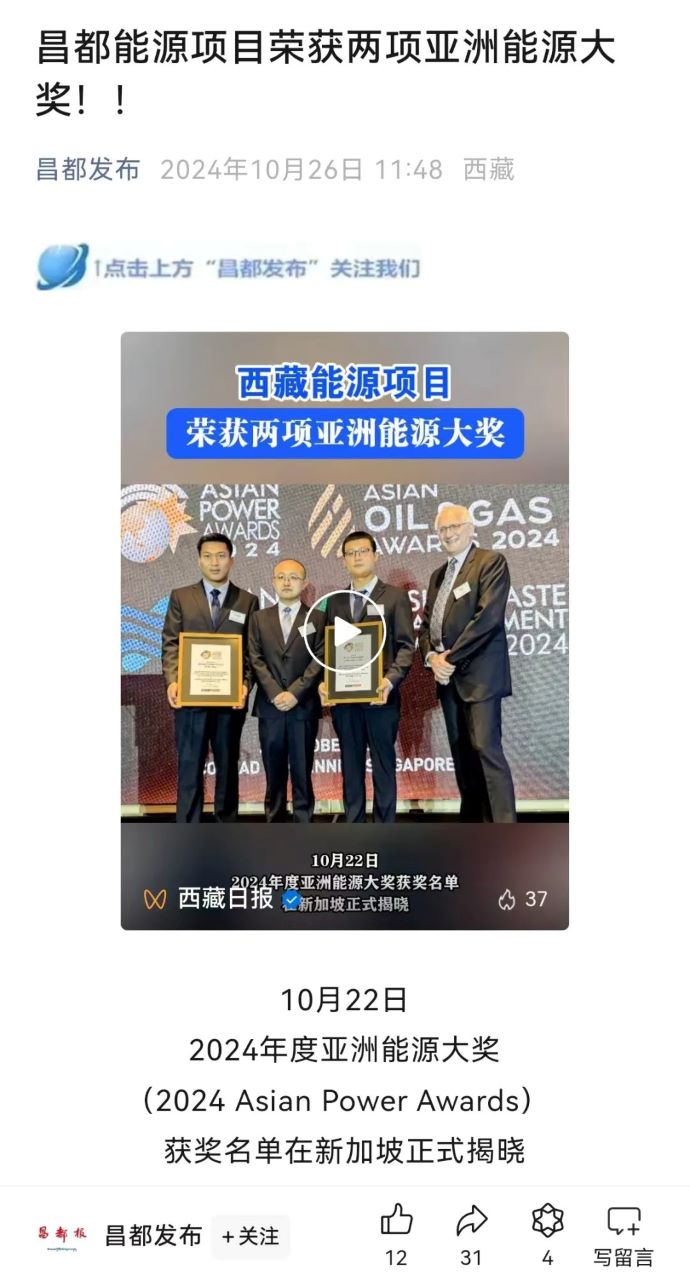 媒體報(bào)道丨西藏能源項(xiàng)目榮獲兩項(xiàng)亞洲能源大獎(jiǎng)