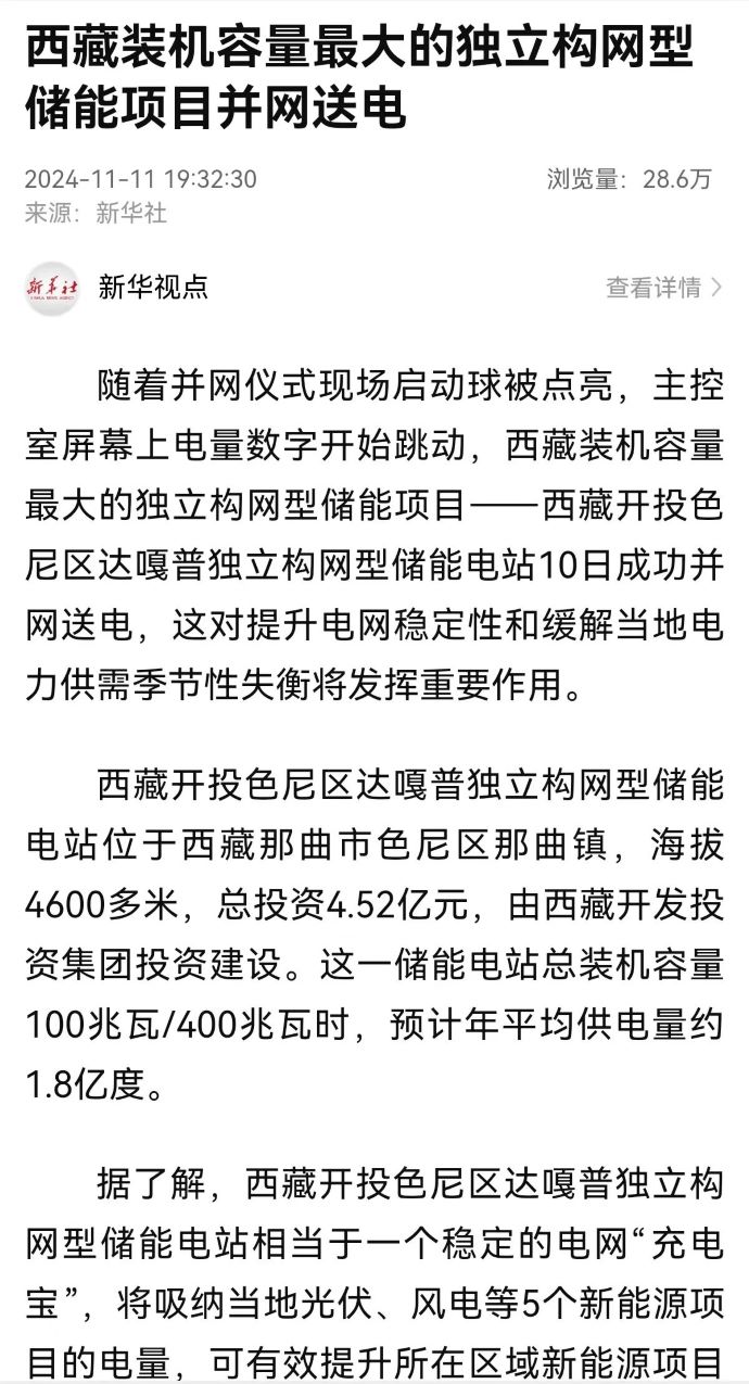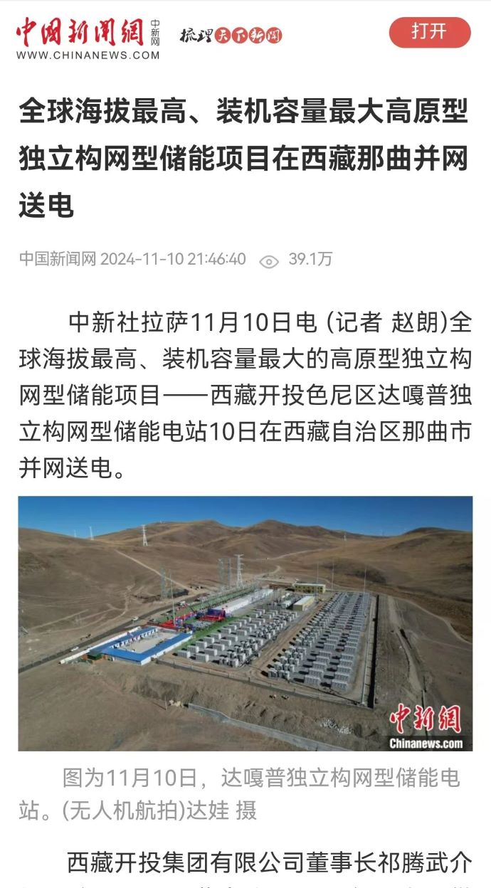 實(shí)力刷屏!各級(jí)媒體聚焦報(bào)道西藏開投色尼區(qū)獨(dú)立構(gòu)網(wǎng)型儲(chǔ)能項(xiàng)目