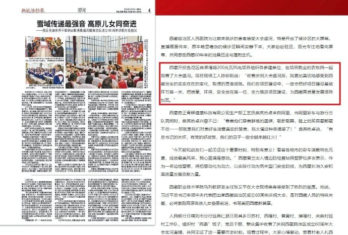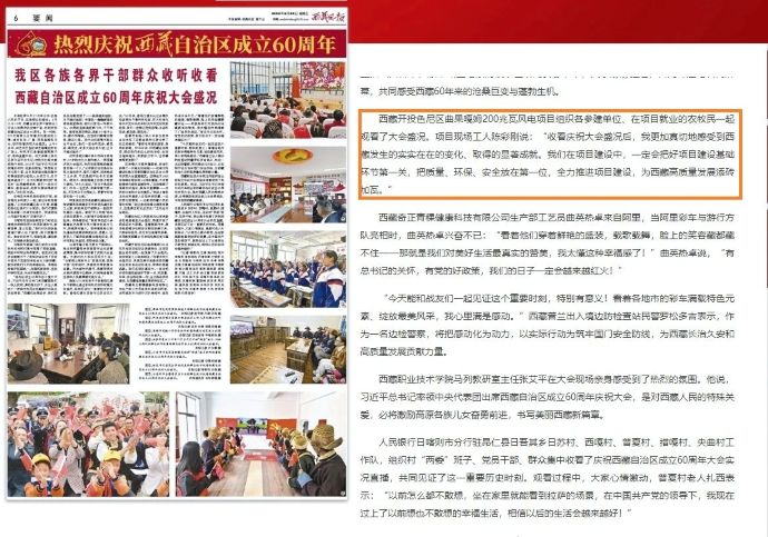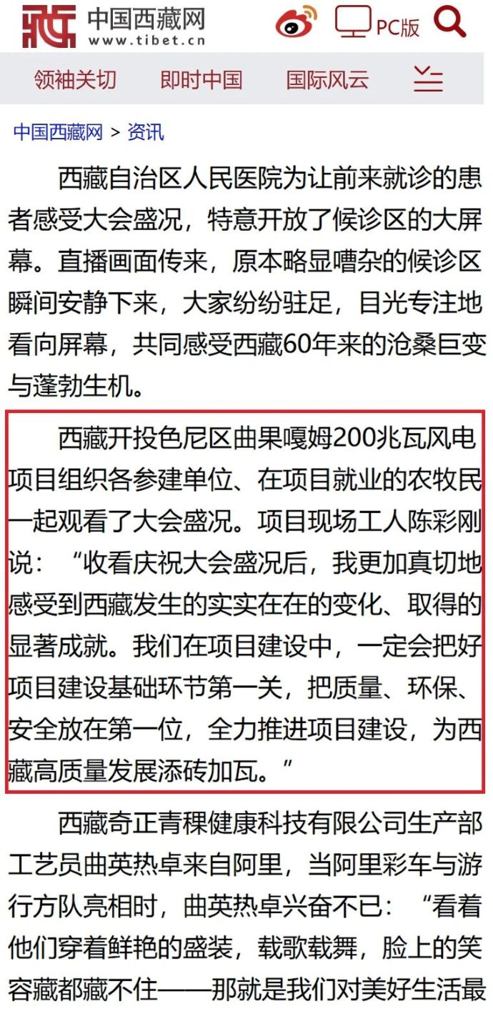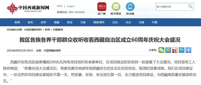 ?。冈?2日,西藏開投色尼區(qū)曲果嘎姆200兆瓦風(fēng)電項目組織各參建單位干部職工、在項目就業(yè)的農(nóng)牧民一起觀看西藏自治區(qū)成立60周年慶祝大會盛況的消息,被中國西藏網(wǎng)、西藏日報、中國西藏新聞網(wǎng)、西藏法制報等各級媒體平臺宣傳報道。