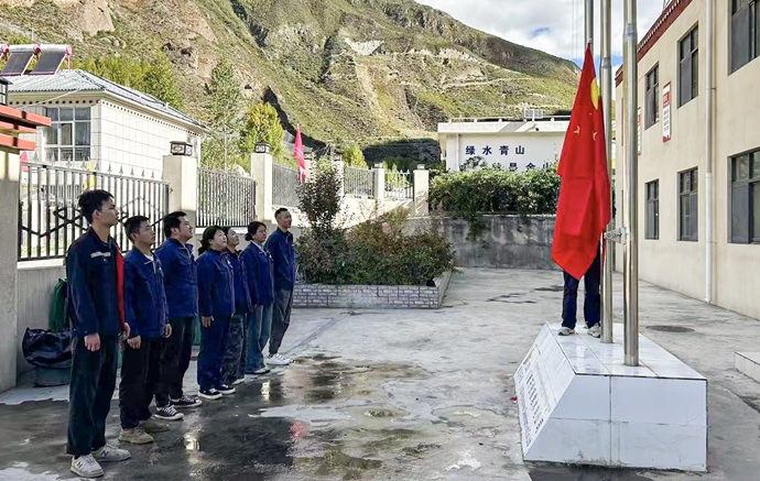 10月1日,西藏開投嘎堆水電公司黨支部組織全體黨員舉行升國旗儀式,慶祝中華人民共和國76周年華誕,向偉大祖國送上誠摯祝福,激發(fā)全體黨員職工的愛國情懷。