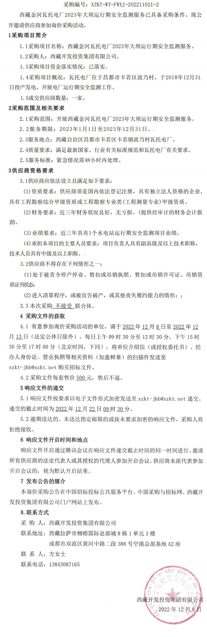 西藏金河瓦托電廠2023年大壩運行期安全監(jiān)測服務(wù)