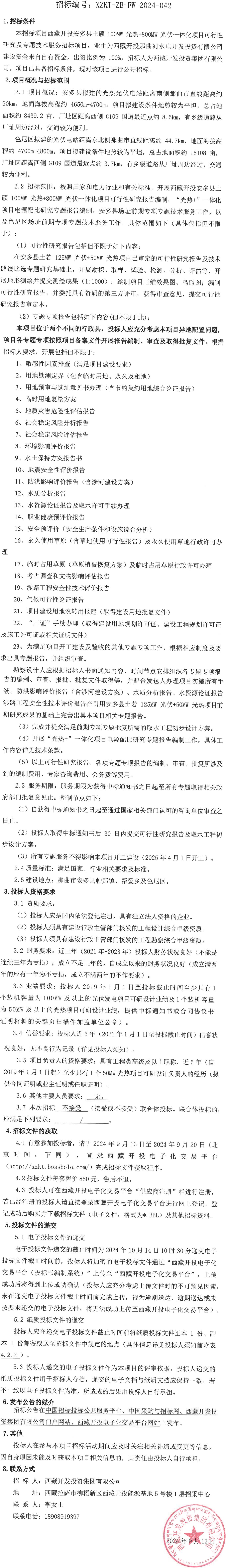 西藏開投安多縣土碩100MW光熱+800MW光伏一體化項目可行性研究及專題技術服務招標